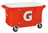The Gatorade Medium Sideline Cart is great for indoor or outdoor athletic events and is perfect for any sideline. Can be used on the field or in the gym or wherever needed. Has a large flat work surface that can be used for multiple purposes. The cart is designed to store equipment, hydration supplies or whatever else you may need quick access to. The two large ice bins are great for storing and keeping drinks cold and is easily accessible.